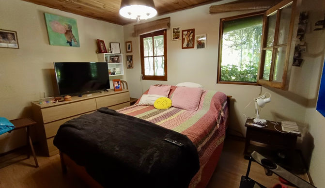 Se ubica dentro de una amplia extensión de terreno de 5200 m2 donde además tiene dos bodegas, casa para cuidador y un precioso jardín con piscina para refrescarse en verano y una gran variedad de árboles frutales, ideal para disfrutar de la tranquilidad y naturaleza al aire libre.